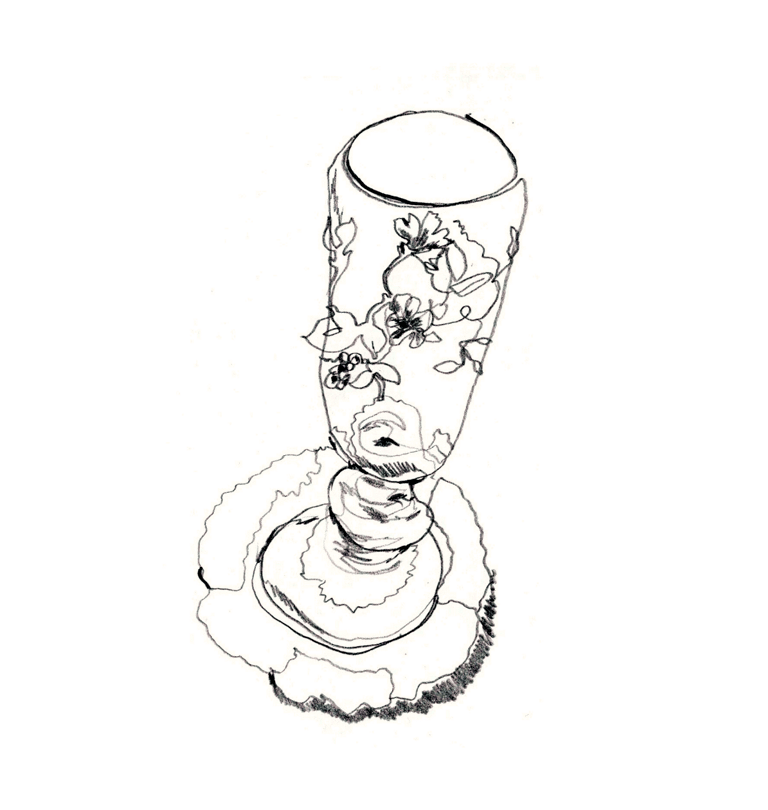 He dibujado un vaso con flores sobre un posavasos hecho a ganchillo por mí. Buscaba dibujar algo sin “ponerle demasiada mente”, como se dice en argot gestáltico. Estoy satisfecha con el resultado. Puedo, así pues, estar contenta. Sin embargo, algo le falta. Le falta ser visto, ser mostrado. ¿A quién le importa que yo haya hecho un dibujo y lo tenga en mi libreta? Un dibujo debe ser mostrado para vivir. ¿No es así? Me pregunto de verdad cuál es el propósito de dibujar. El propósito te lo voy a decir yo (me doy cuenta a medida que escribo) que es el dibujar mismo, en caso de que uno quisiera dibujar. Por ejemplo, no tiene el mismo propósito un dibujo hecho por encargo, que uno hecho porque una quería dibujar algo porque se había propuesto dibujar cosas sin pretensión y escribir sobre el acto de hacer un dibujo.